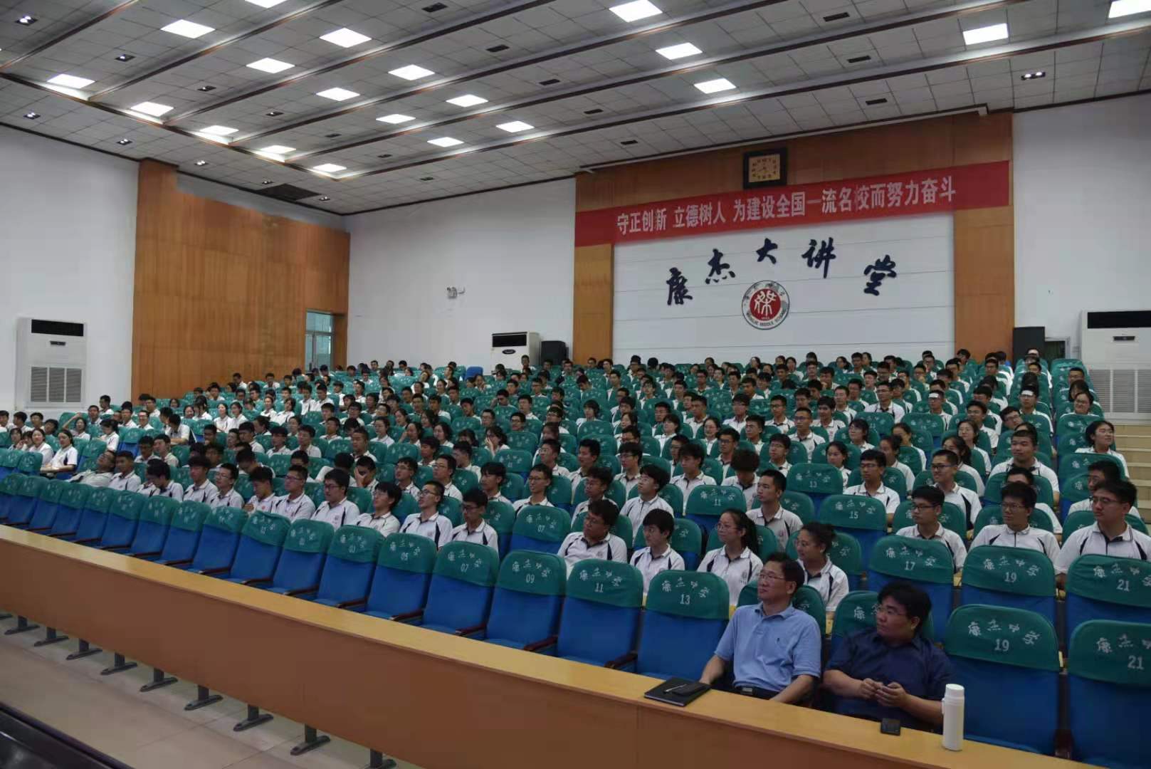 王聪教授为康杰中学的同学们带来了题为《走进“智能材料”的世界》的报告,共计200余名师生聆听了报告。报告生动形象地为学生们科普了智能材料的发展简史与现状,并指出该领域面临的多种机遇与挑战。最后,王聪教授给学生们提出了一些希望:“热爱科学,不断创新;学术自由,国际视野;胸怀天下,志在四方;思维锻炼,挑战自我;博采众长,协作共赢;文理结合,全面发展。”王聪教授和张德明老师同时介绍了今日北航取得的多项成果、学院和学科设置的变化等。