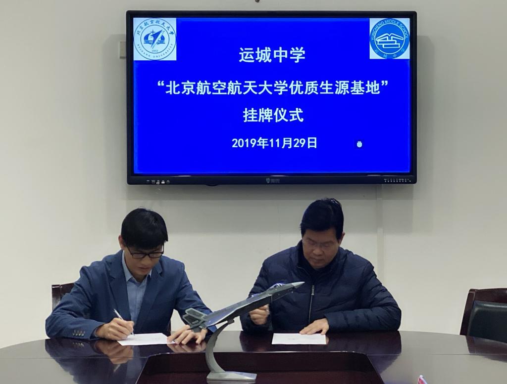 北航与两所中学签订了“优质生源基地”合作协议并举行了授牌仪式。