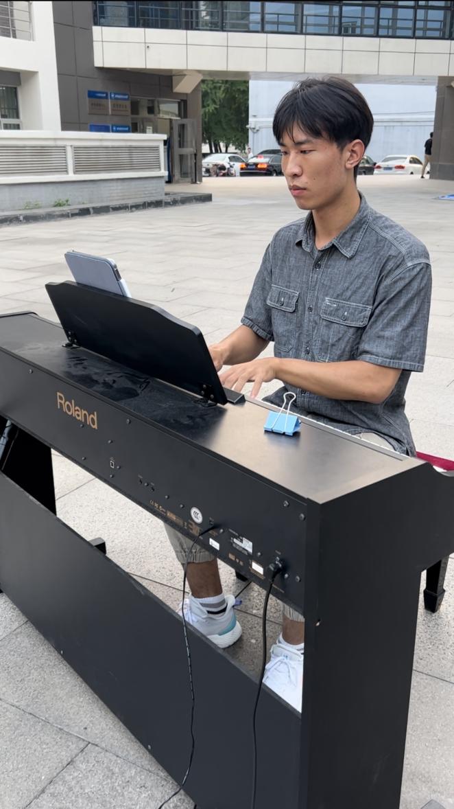 晚会的开场是由集成电路学院的王泽坤带来的钢琴独奏。他的指尖在琴键上跳跃,音符随之流淌,伴随着美妙的琴声,观众们也被牵引进了音乐的海洋。