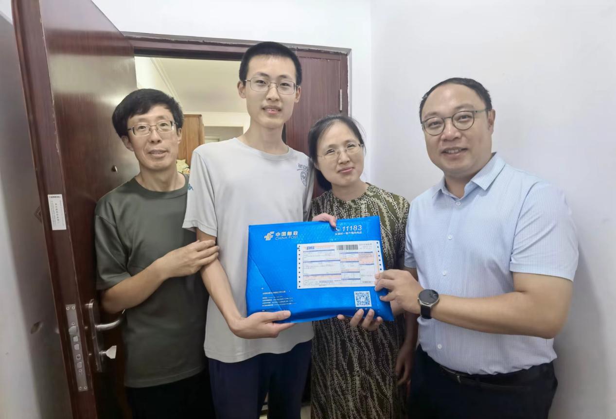 7月22日傍晚,北航集成电路科学与工程学院常务副院长张悦、党委副书记马田和学校招生工作办公室张路杨带着北航首封微电子科学与工程(卓越人才培养试验班)的录取通知书来到王禺尧同学家中。王禺尧同学和家人郑重接过这份沉甸甸的录取通知书,同时也是接下了一段人生新旅程的邀请。