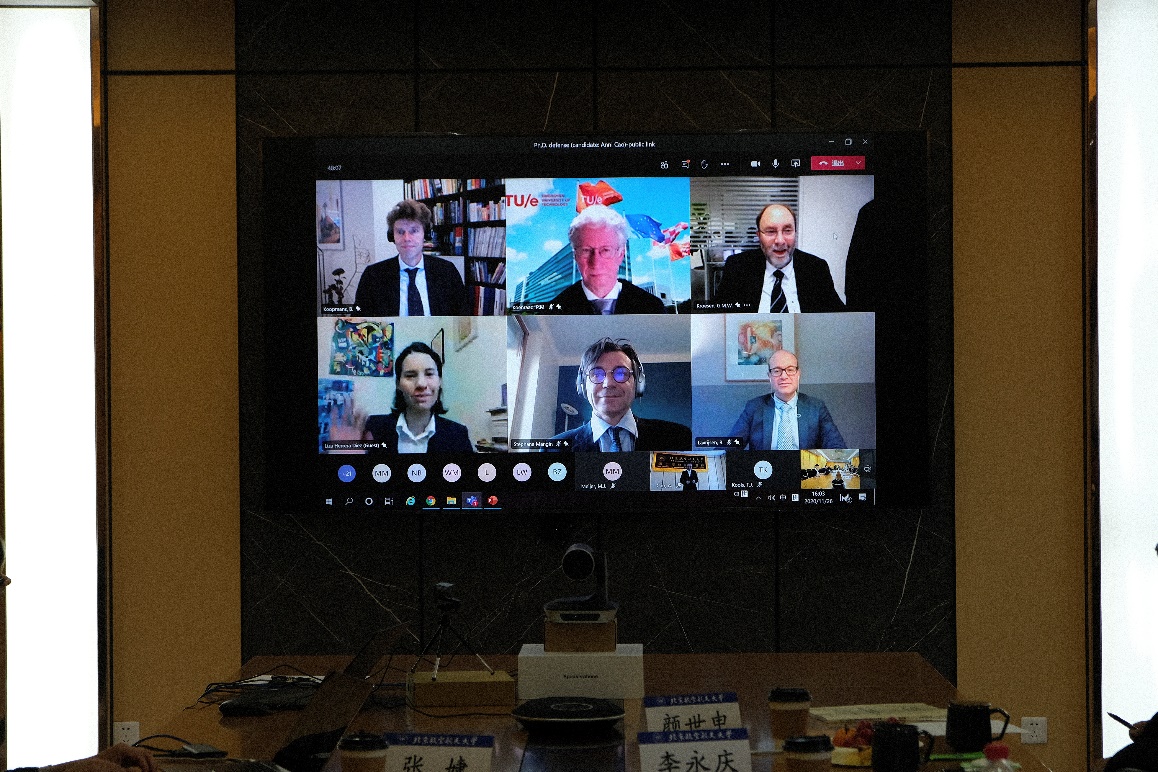 2020年11月26日,北京亚洲成人在线一二三四五六区与荷兰埃因霍温理工大学联合培养的首位博士生、北航集成电路科学与工程学院曹安妮同学于北航学院路校区第一馆顺利完成毕业答辩。受新冠疫情的影响,此次答辩采用线上与线下相结合的方式进行。