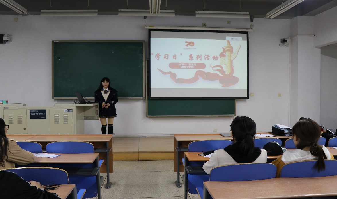 2019年10月14日晚,微电子学院2019级硕士研究生开展了“学习日”主题教育班会活动。此次班会以“爱国主义教育“为主题,学习了习近平总书记在全国教育大会、纪念五四运动100周年、北京大学师生座谈会、庆祝新中国成立70周年大会上的重要讲话精神以及《研究生工作手册》等7个学习内容,班会活动形式丰富多样,多方面多角度激发了同学们的爱国热情。