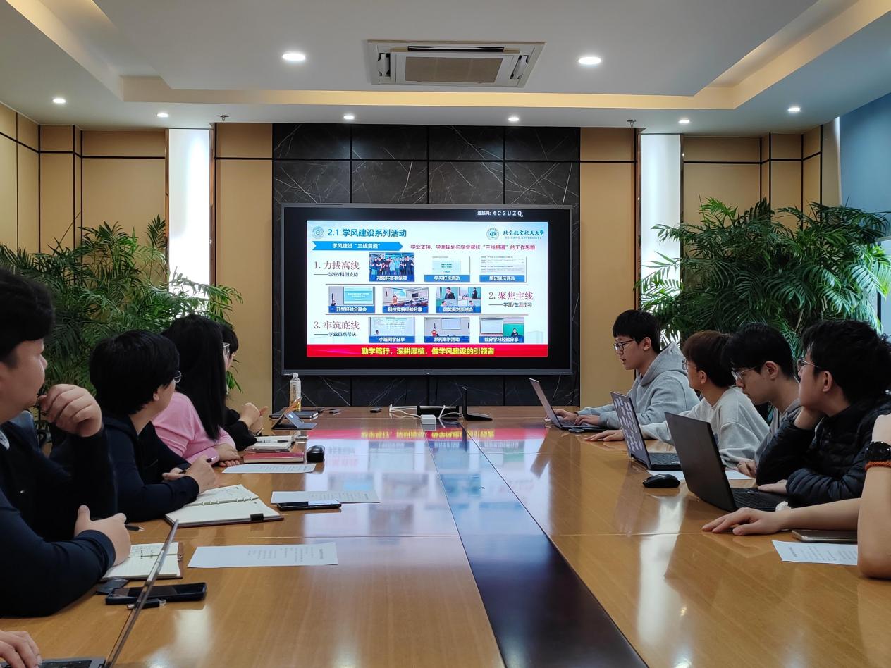在听取各组织工作汇报后,与会师生立足工作实际展开进一步交流。研究生会学生代表围绕学生工位流转机制优化、工位设施完善方案、就业支持体系构建、培养方案解读推进以及加强学术交流开展等实际议题与学院领导展开深入交流,结合实际案例剖析问题,师生共同探讨解决方案,现场气氛热烈,为后续工作提供了思路。学院党委书记高静指出,就业支持活动的组织一方面由学院统筹引领就业资源对接,另一方面可依托学生就业俱乐部自主运营,形成协同推进的开展模式;同时,强化学生干部的主人翁意识,推动其主动发现问题、高效解决问题,切实提升服务效能;此外,积极探索灵活务实的校企联合培养机制,在追求培养质量的前提下,紧密结合学科特色与市场需求,为学生成长成才提供多元化支撑;在学术交流建设层面,发挥研究生在学术创新中的主体引领作用,策划更多地高水平学术交流活动,并充分发挥学生组织的纽带作用,通过搭建多元化学术平台、创新活动形式,持续浓厚学术氛围。