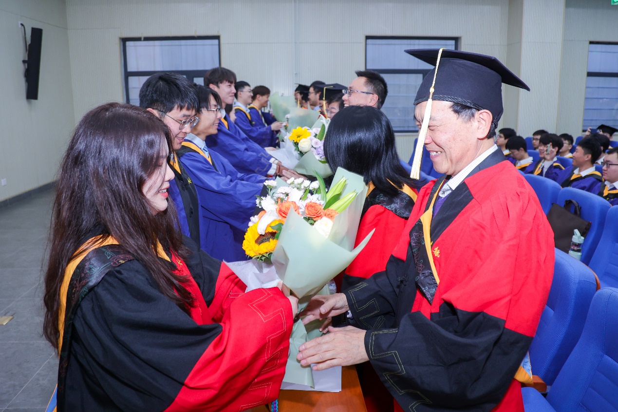 毕业生代表向导师代表献上鲜花,表达自己对导师辛勤指导的感激。