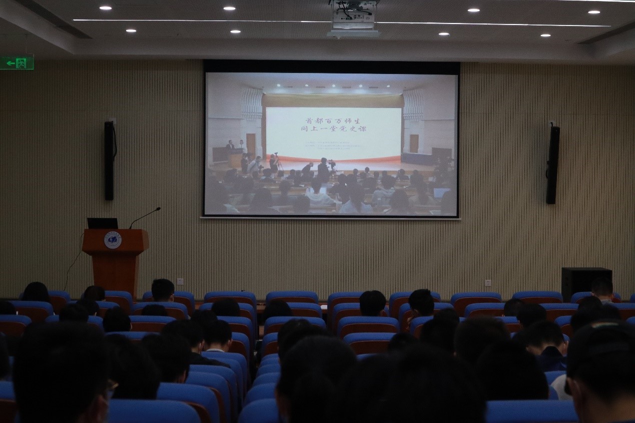 谢春涛教授从中国共产党为什么能建立新中国、中国共产党为什么能取得现代化建设的巨大成就等问题展开授课,结合多个红色历史事件对中国共产党史百年来的奋斗历程进行了深入浅出、生动形象的讲解,充分证明了中国共产党是有远大理想追求、有科学理论引领、有选贤任能机制、有严明纪律规矩、有自我革命精神、有强大领导能力的党。