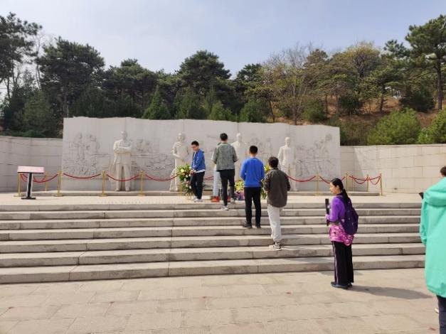 随着讲解员娓娓道来英雄们的故事,那一幅幅的历史画卷仿佛在同志们的眼前展开,吴石将军在赴台前对好友说到:“自己的决心已经下得太晚了,为人民做的事太少了。现在既然还有机会,个人风险算不了什么”。“所怀者何?天下有饥者,如己之饥;天下有溺者,如己之溺耳。民族危急,别亲离子而赴水火,易面事敌而求大同“,这些字安静地被镌刻在广场上,同那四尊洁白的塑像一同沐浴着山谷中地和煦阳光。党员同志们在雕像前默哀一分钟,随后依次走上前去,向英雄及无名英雄们敬献菊花,缅怀为新中国建立付出热血和生命的革命先辈们。