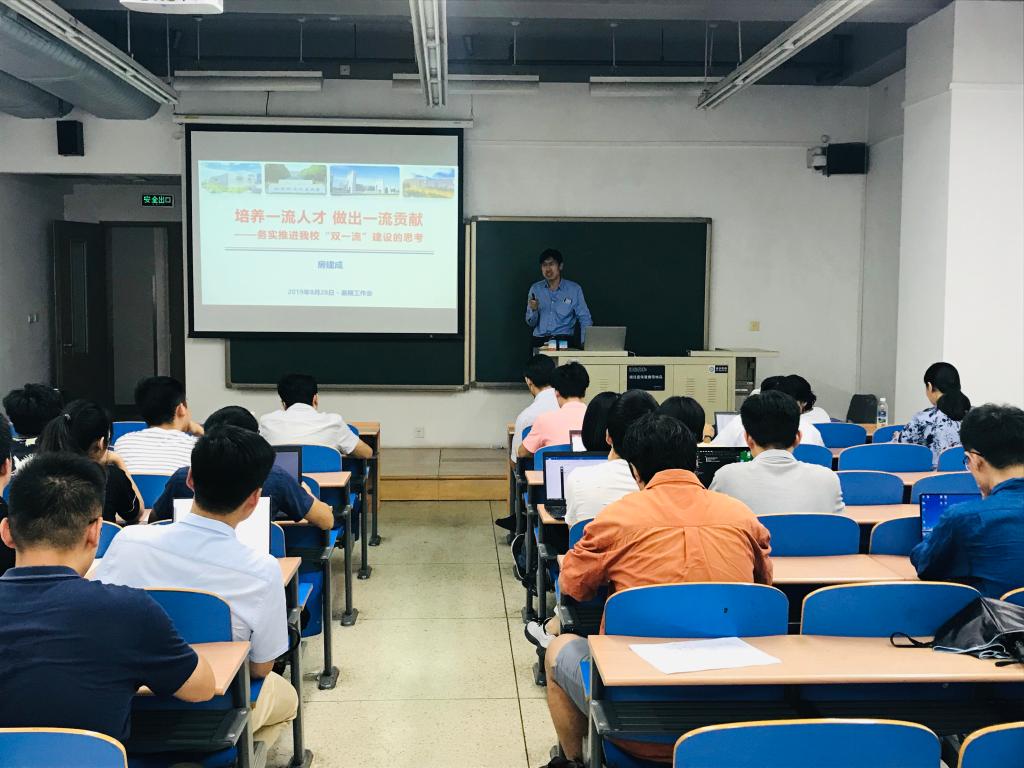 2019年9月4日下午14:30分,微电子学院第八次教师学习日活动在学院路校区新主楼F201会议室召开。学院书记梁恩和组织全院教职工、博士后、学生党员进行学习。