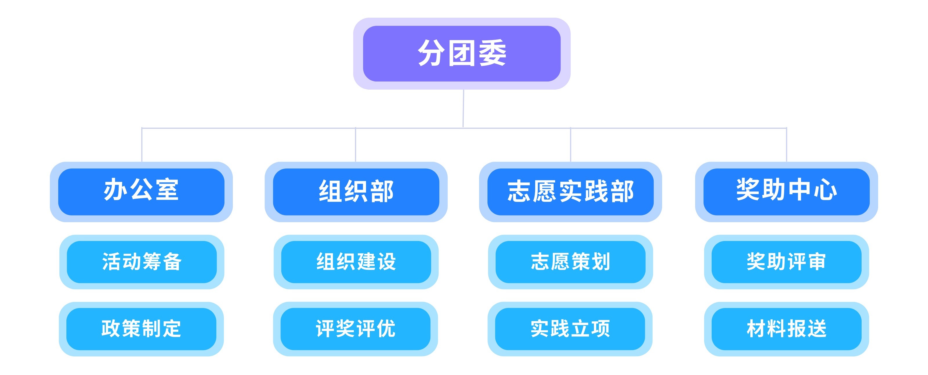 集成电路科学与工程学院分团委下设办公室、组织部、志愿实践部、奖助中心四部门,指导学生会、研究生会、新闻中心、科技创新中心等院级学生组织,秉承服务宗旨,凝聚青年力量,传播青年声音,担当时代责任。
